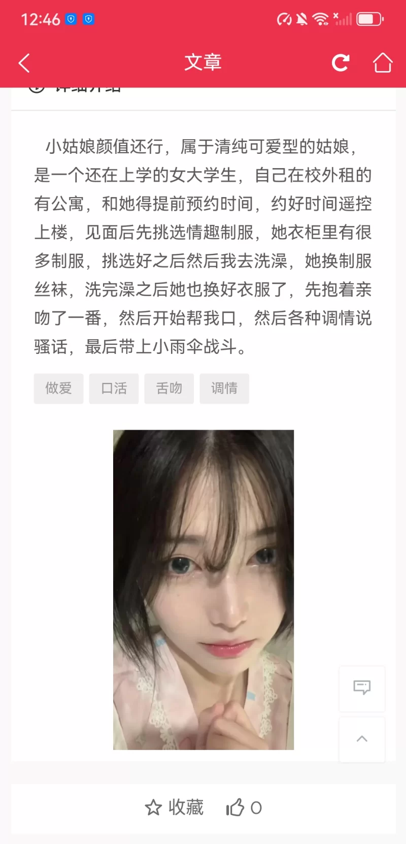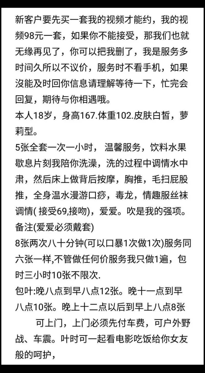 威客管理提示:要求付定金 保证金的,总之提前要钱的都是骗子 这是自己 在微信上自己搜索的附近人,然后聊着就知道他是干兼职的,东北的少妇,离婚了!上来就谈好了价钱我就骑车去。到了他家吃了一点水果,然后就聊天洗澡就开始了!先给你吃小鸡,吃的那叫一个爽!很会玩,水也挺多的!妈的个逼,就是有点黑。凑起来还有感觉!好了。