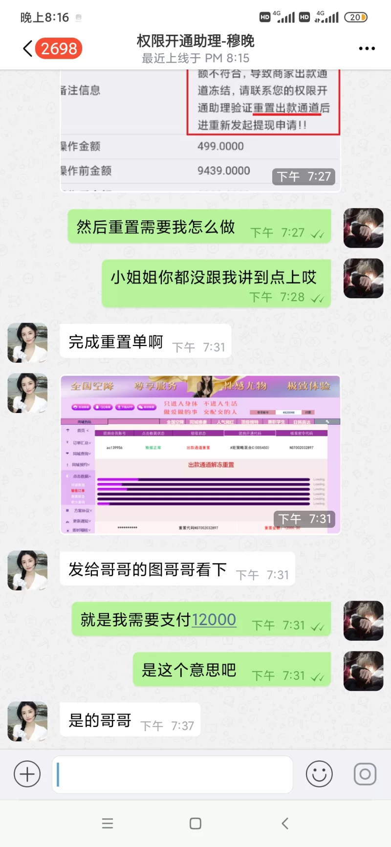 微信添加的,然后打第一个电话过去是个不错的女声,谈好价格后说要先给订金路费30,反正是小钱质量还行的话也就是赚了,等到大妈来了后,我发现声音不对,人更不对。我就要求退了,没想到她还要我再给多一些路费,我就不给了,已经在微信谈好路费价格也给过了,然后就开始骂人了。各位兄弟们请认准这几个号码wxid_97l09ktw60nb22 18589257497 13593703962别上当了